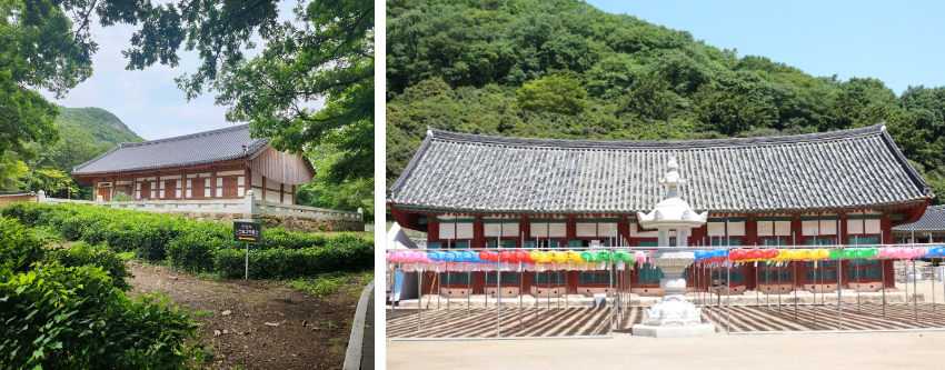 건축 양식: 전통적인 한국 불교 건축 양식을 따르며, 기와지붕과 목조 구조로 되어 있습니다. 특히, 대웅전의 내부는 화려한 불상으로 장식되어 있습니다.