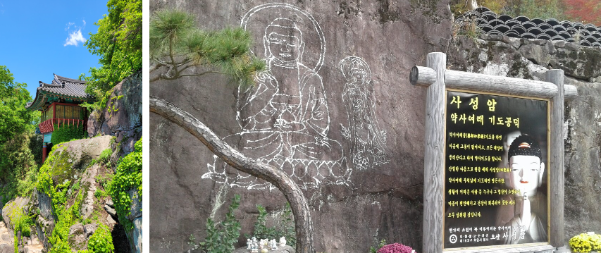 주요 건물: 사성암의 대웅전은 전통적인 한국 사찰 건축 양식을 잘 보여주며, 그 아름다운 외관과 내부 장식이 돋보입니다. 이곳은 신도들이 기도를 드리는 주요 공간입니다
